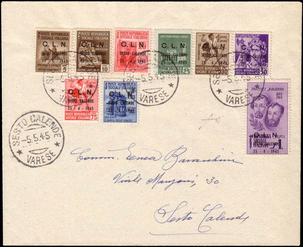 [C.L.N.] 1945 (5 mag.)Sesto Calende.Serie completa di 9 valori su busta non...