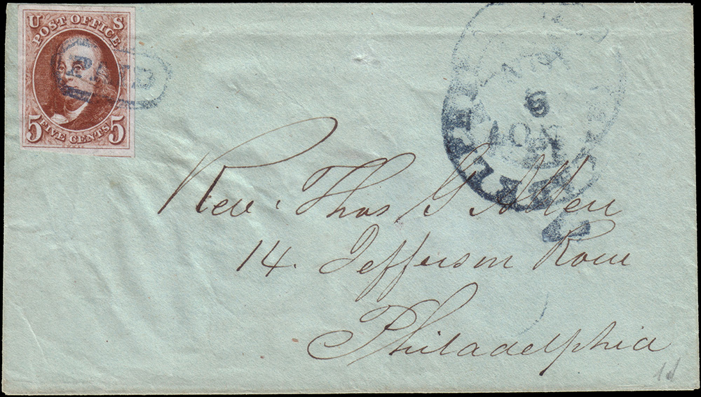 Cover franked with 5c. brown orange "Franklin" to Philadelphia, cancelled with blue boxed cancel PAID.