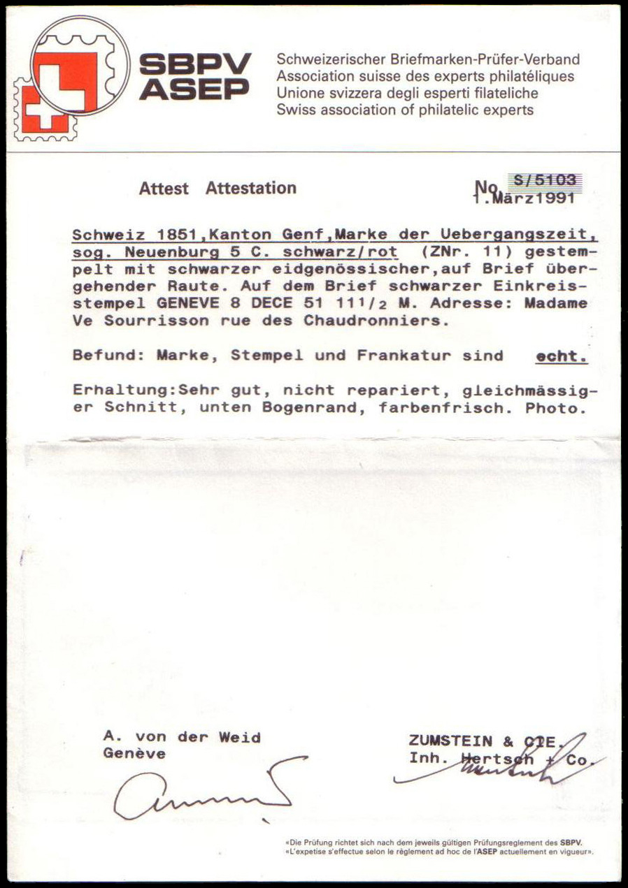 [SVIZZERA] 1851 (26 set.)Ginevra, "Vaud".Lettera con testo spedita localmente...