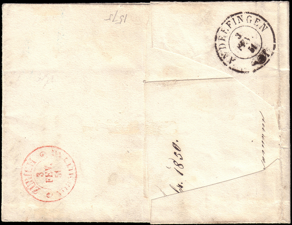 [SVIZZERA] 1851 (2 feb.)Poste Federali.Lettera con testo da Berg per Embrach...