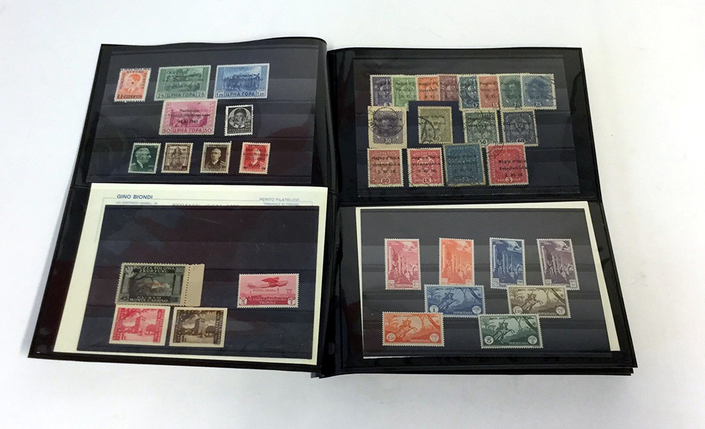 Lot consists of individual specimens and in set with fine item and numerous certificates. Note a 7.70 liras airmail Cruise Italo Balbo 1930 and some interesting specimens, also with variety, of the Italian settlement in Montenegro. In a clipboard. As is.
