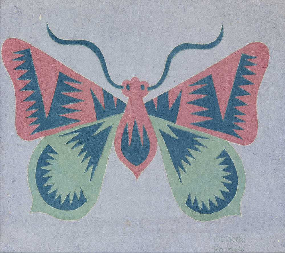 Fortunato Depero (Fondo 1892 - Rovereto 1960) Farfalla zig-zag, 1920;Ricamo...