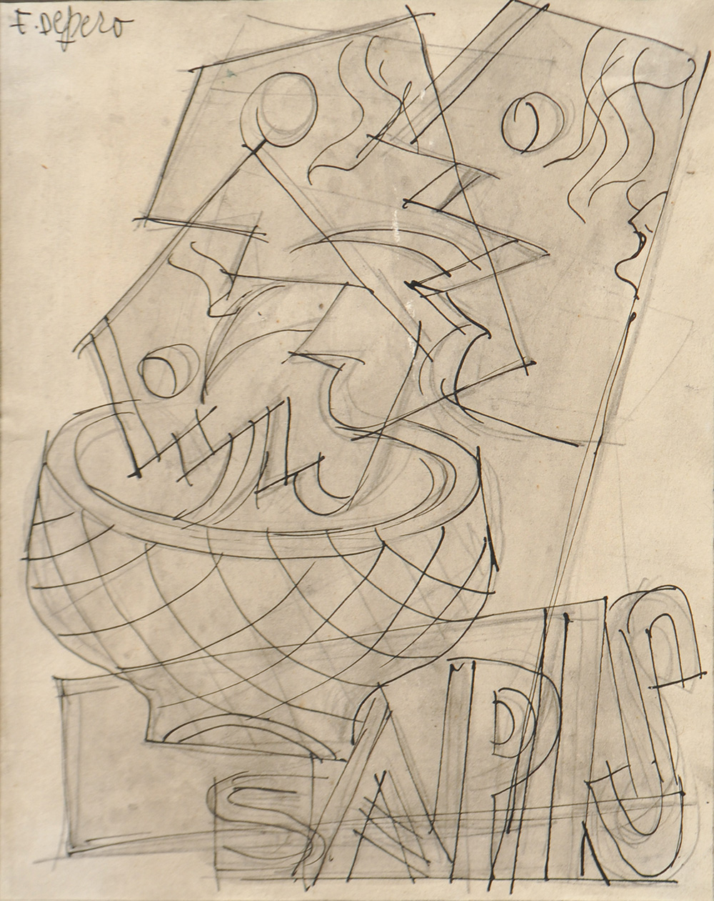 Fortunato Depero Bozzetto pubblicità SAPIS;China, matita acquarellata, 18,5 x 15,5