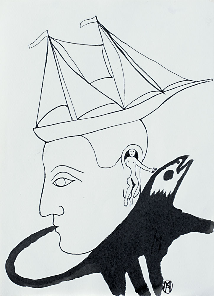 MIMMO PALADINO Paduli (Bn) 18/12/1948 - Senza titolo, anni'80, acquerello e china su carta cm. 29x21, sigla in basso a destra, firma al retro, email allegata da parte dello Studio Paladino che ne conferma l'autenticità.