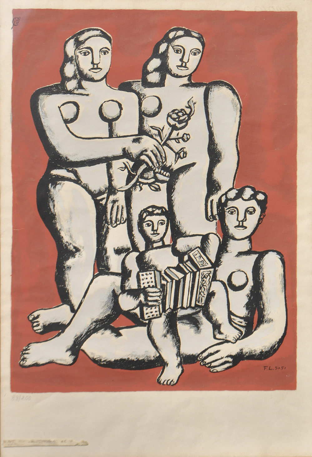 Ferdinand Leger (Argentan 1881 - Paris/Parigi 1955) Les trois soeurs, 1950-1951;Farblithografie, 44,5 x 33,5 (Platte), 54,5 x 37,5 cm (Blatt), verso Etikette Ausstellung Livorno 1958
