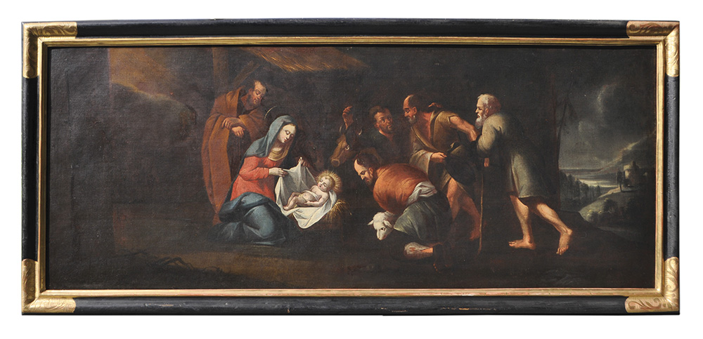 Tiroler Maler des 18. Jh. Anbetung der Hirten;Öl auf Leinwand, 71 x 173 cm, restauriert, doubliert, gerahmt