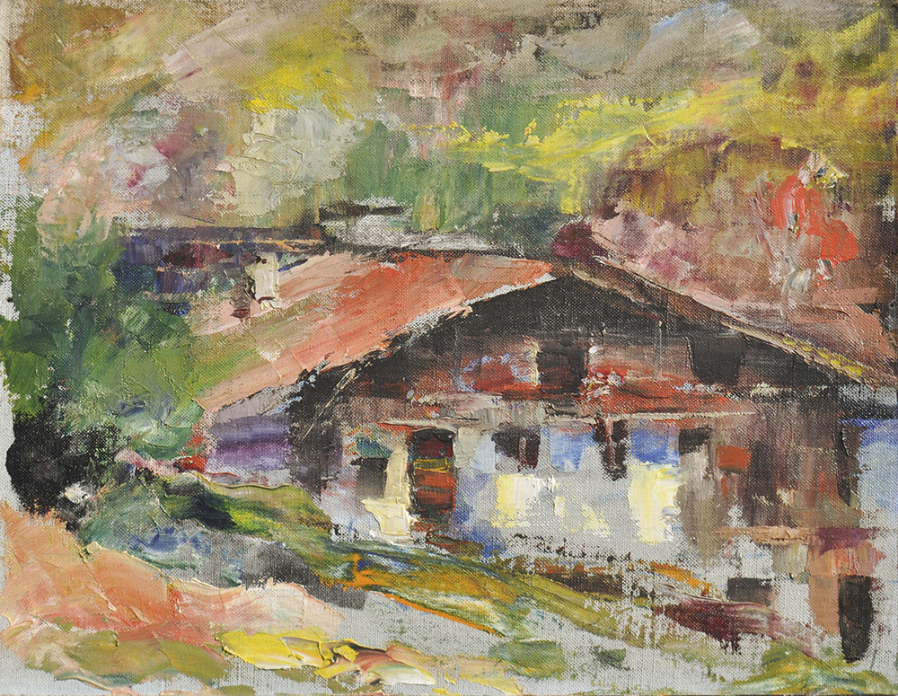 Rudolf Bellenzier Studie aus dem Passeiertal, 1963;Öl auf Holz, 25 x 32 cm, gerahmt