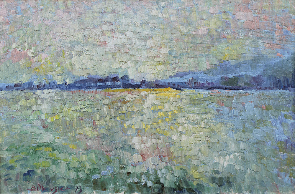 Rudolf Bellenzier Sommertag am Kalterersee, 1973;Öl auf Karton, 41 x 60 cm, gerahmt