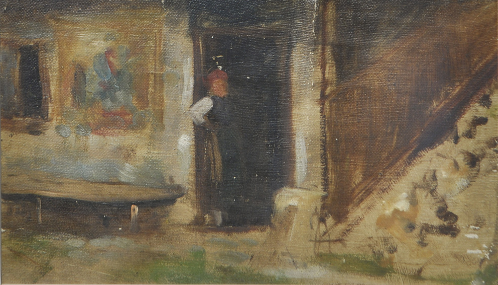 Josef Moroder Lusenberg (St. Ulrich in Gröden/Ortisei Auf der Schwelle;Öl auf Leinwand, 17 x 28 cm, gerahmt