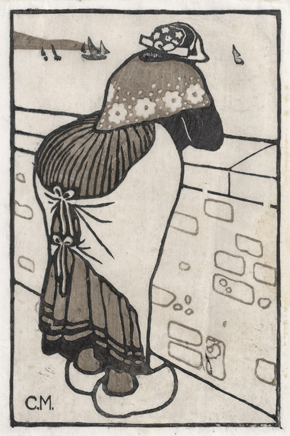 Carl Moser In Erwartung, 1914;Farbholzschnitt, 35,7 x 26,5 cm