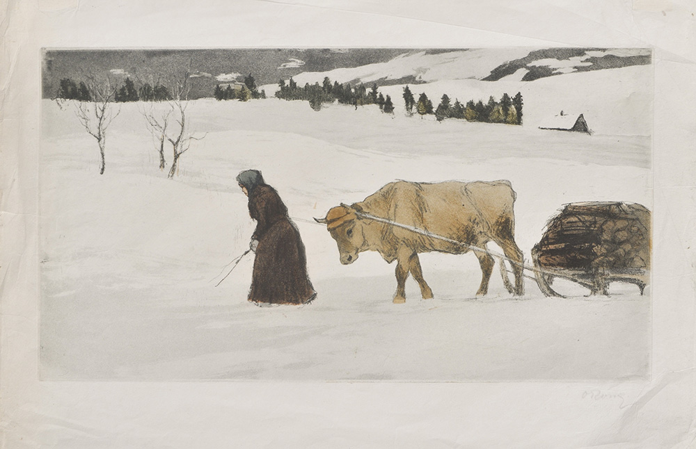 Oswald Roux (Wien/Vienna 1880 – 1961) Alpenwinter;Farbradierung auf...