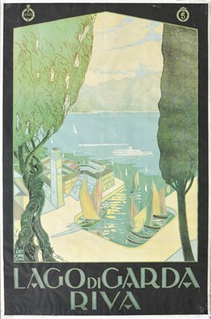 Antonio Simeoni (* Rivoli 1884) Plakat Lago di Garda/Riva, 1927;Lithografie, 99,5 x 68,5 cm, Papier auf Leinwand aufkaschiert,