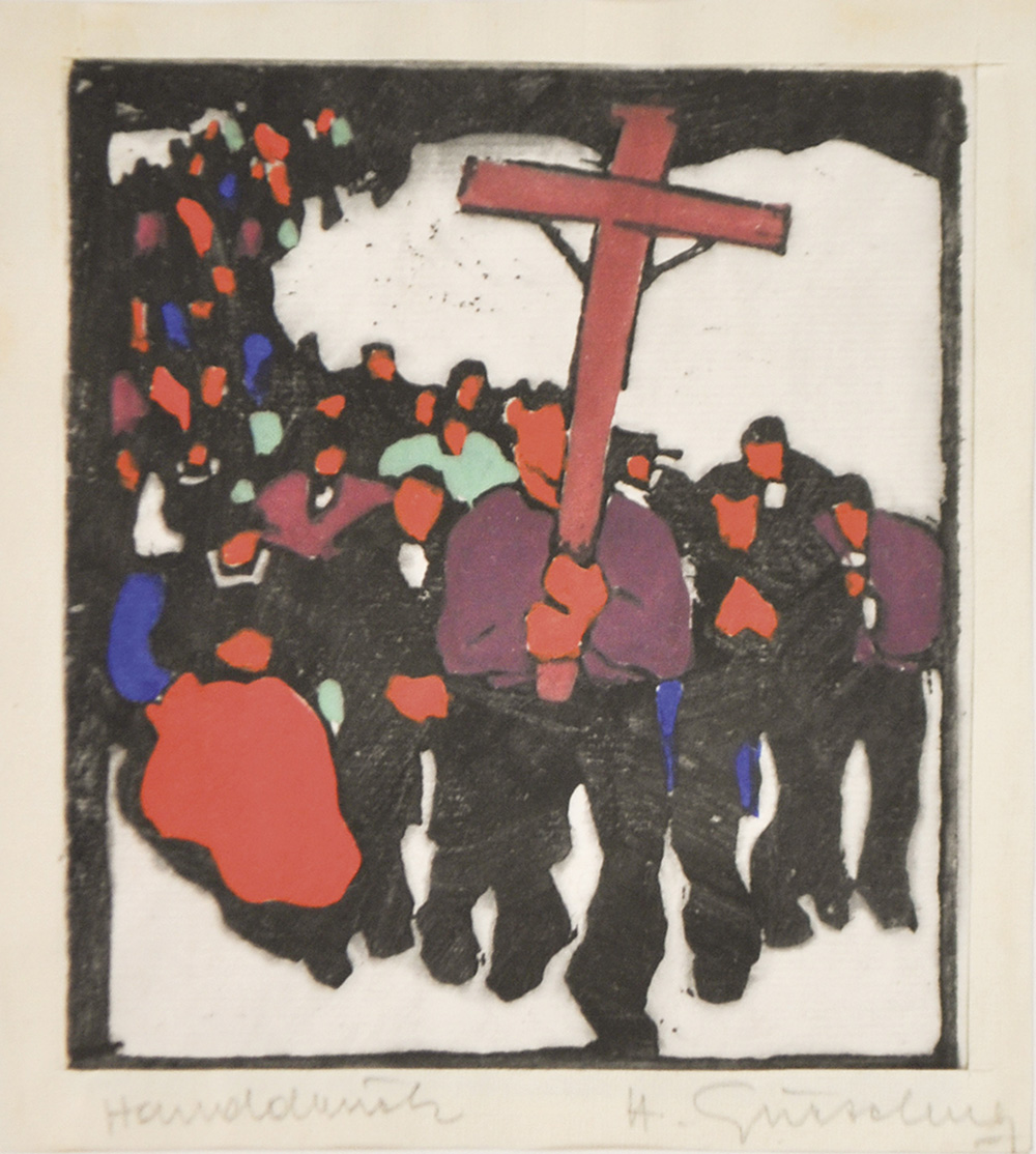 Herbert Gurschner (Innsbruck 1901 – London 1975 Prozession;Farbholzschnitt,...