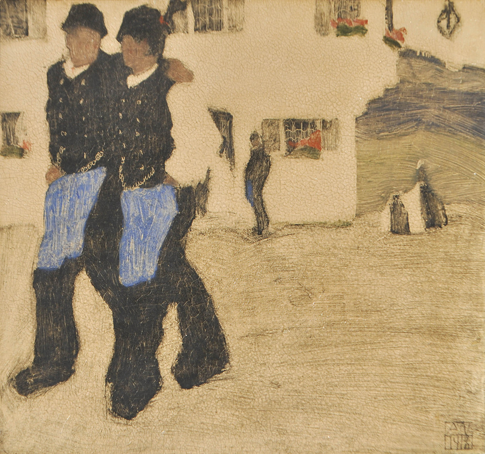 Alfons Walde ( Oberndorf, Kitzbühel 1891 – Kitzbühel 1958) Sonntag in Tirol, 1912;Öl auf Karton, 27,5 x 29,5 cm