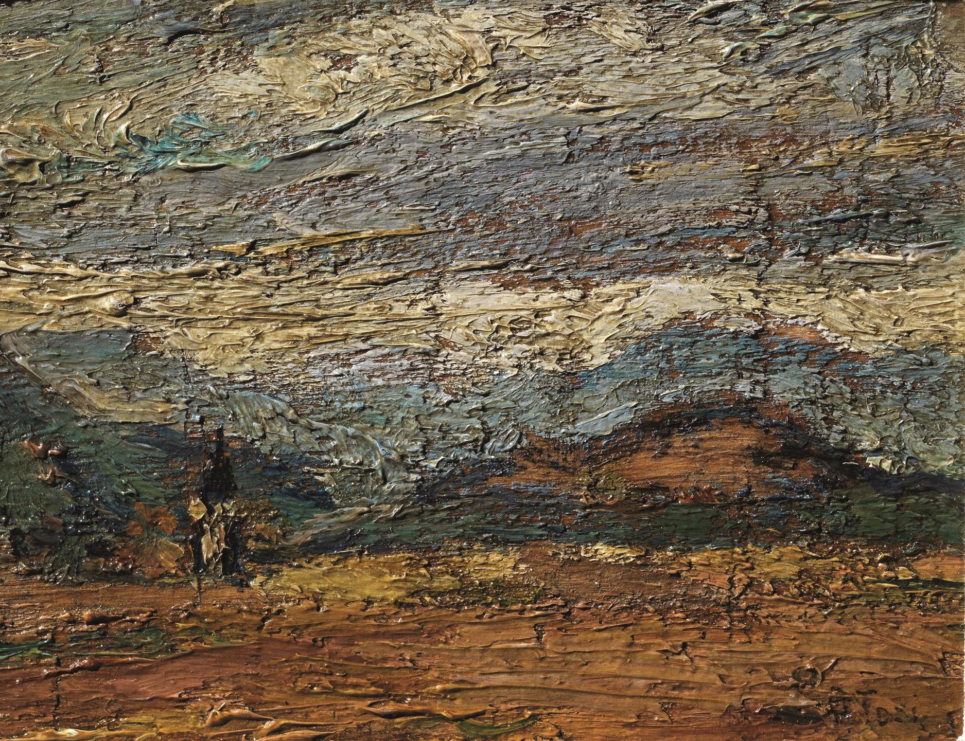 Arturo Tosi (Busto Arsizio 1871 - Milano 1956) PAESAGGIO olio su tavola, cm 13x18 firmato eseguito nel 1910 Provenienza Collezione privata Galleria Gianferrari, Milano Esposizioni Omaggio ad Arturo Tosi, Ex Chiesa di Sant'Agostino, Bergamo, 8 ottobre - 12 dicembre 1993 (ripr.)