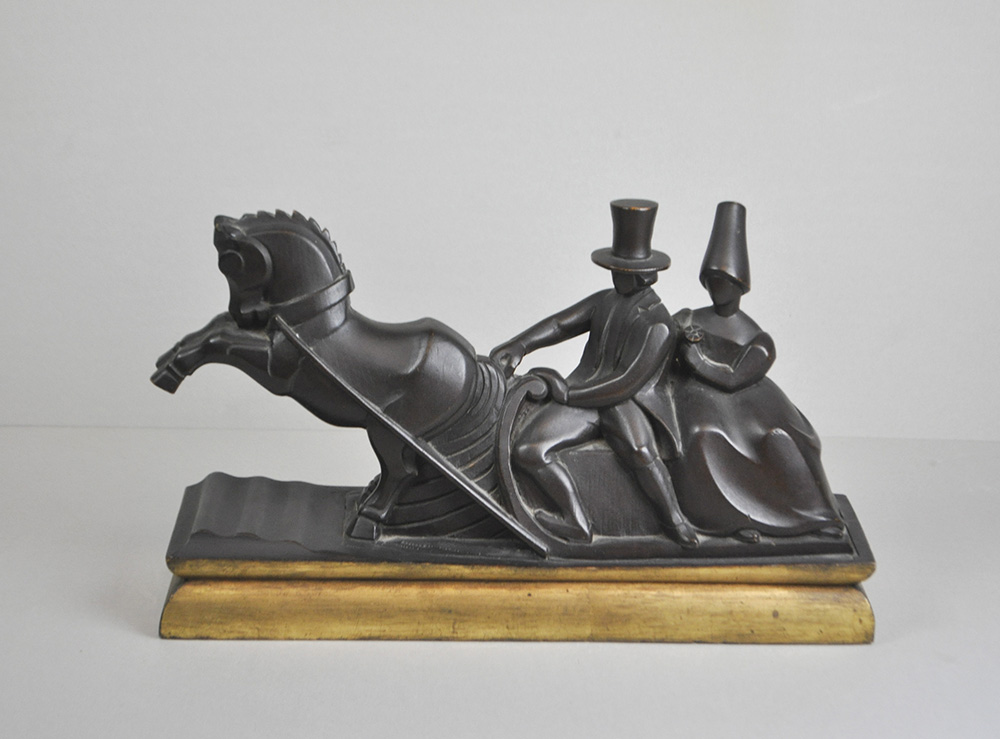 Alberto Mussner Schlittenfahrt eines Grödner Paares, um 1930;Holz patiniert, 41 x 11 x 26 cm