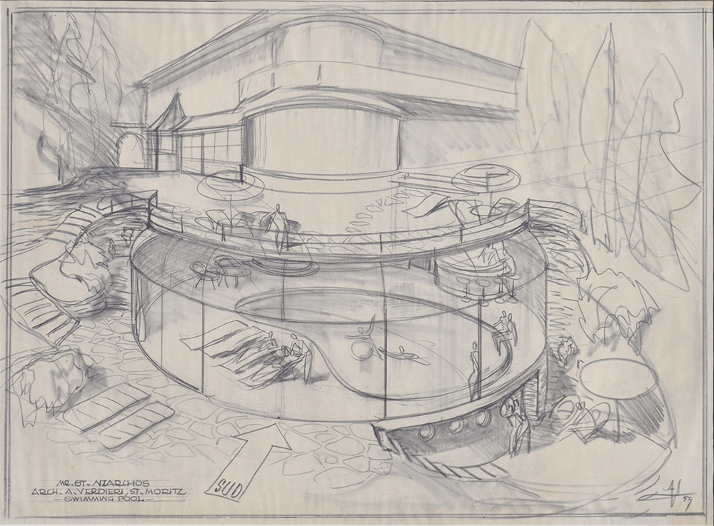Franz Lenhart Entwurf „Swimming Pool Villa Niarchos St. Moritz;Entwurf „Swimming Pool Villa Niarchos St. Moritz“