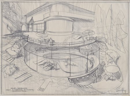Franz Lenhart Entwurf „Swimming Pool Villa Niarchos St. Moritz;Entwurf...
