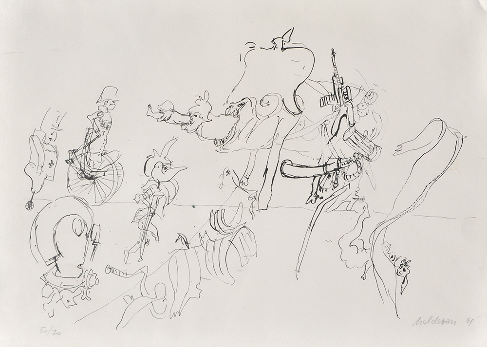 Kurt Moldovan (Wien/Vienna 1918 – Wien/Vienna 1977) Allegorie des Krieges, 1969;Lithografie, 36,5 x 51,5 cm, gerahmt