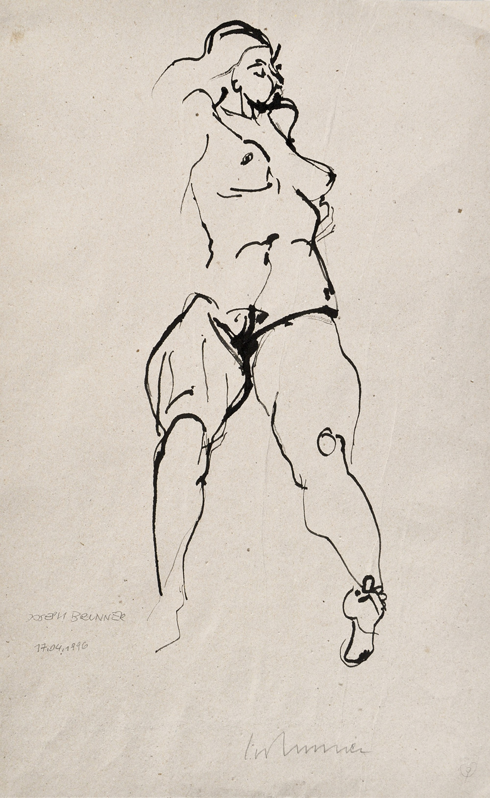 Joseph Brunner Weiblicher Akt, 1996;Tusche, 53 x 33 cm Signiert u. datiert