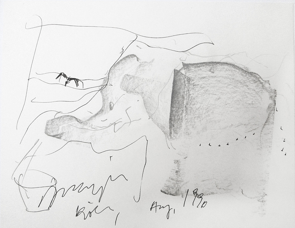 Siegfried Anzinger (* Weyer/Seyr 1953) Elefant, 1990;Bleistift, Tusche, 18,2...