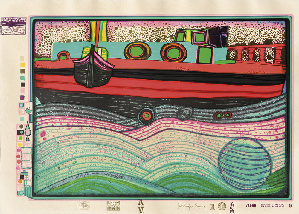 Friedensreich Hundertwasser Regentag auf Liebe Welle, 1970;Serigrafie, 46 x 65 cm