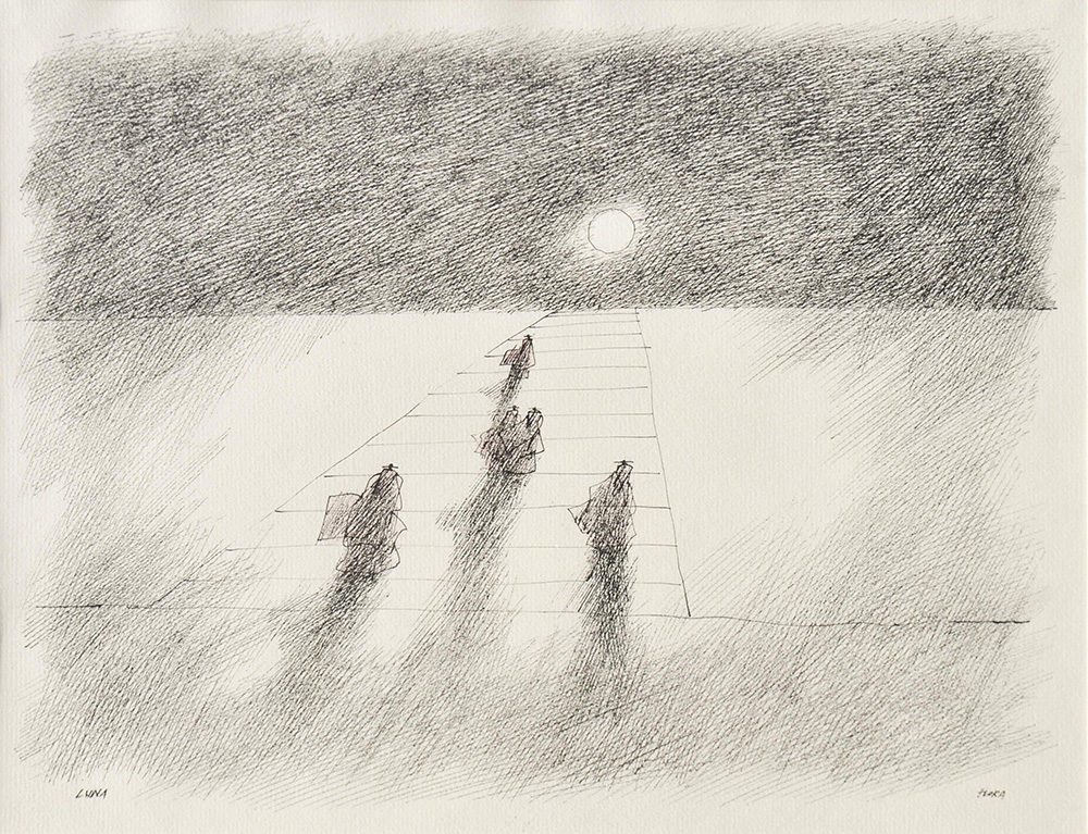 Lot 687 | Paul Flora Luna;Tusche, Buntstifte, 23 x 30 cm, gerahmt Signiert u. betitelt