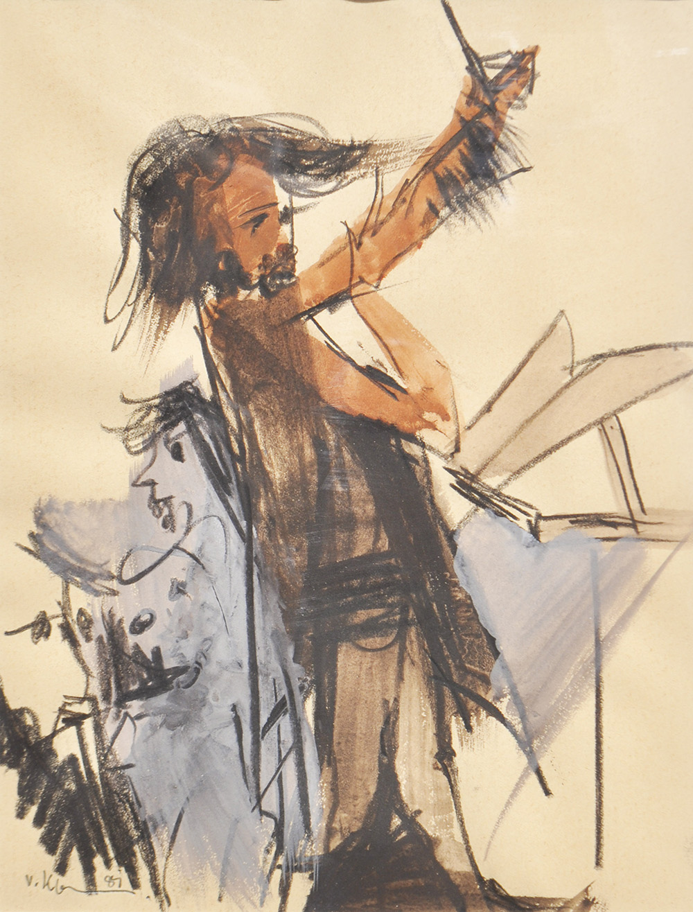 Lot 701 | Vladislav Kavan Dirigent, 1984;Rötel u. Aquarell, 25,8 x 19,7 cm, gerahmt...