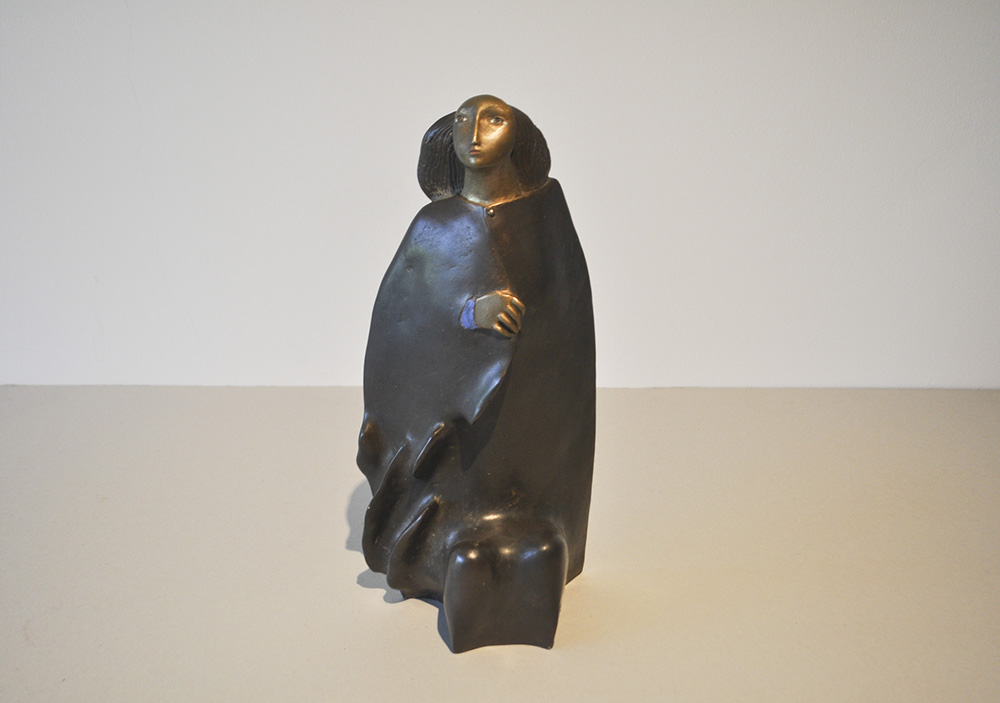Guido Anton Muss Frau mit Mantel, 1996;Bronze, z. T. farbig gefasst, Höhe 40 cm