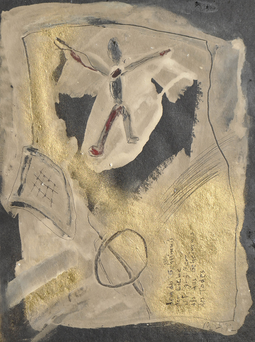 Margareth Dorigatti (* Bozen/Bolzano 1954) Denn das Geheimnis der Liebe ist größer als das Geheimnis des Todes,1992;Mischtechnik, 35 x 28 cm