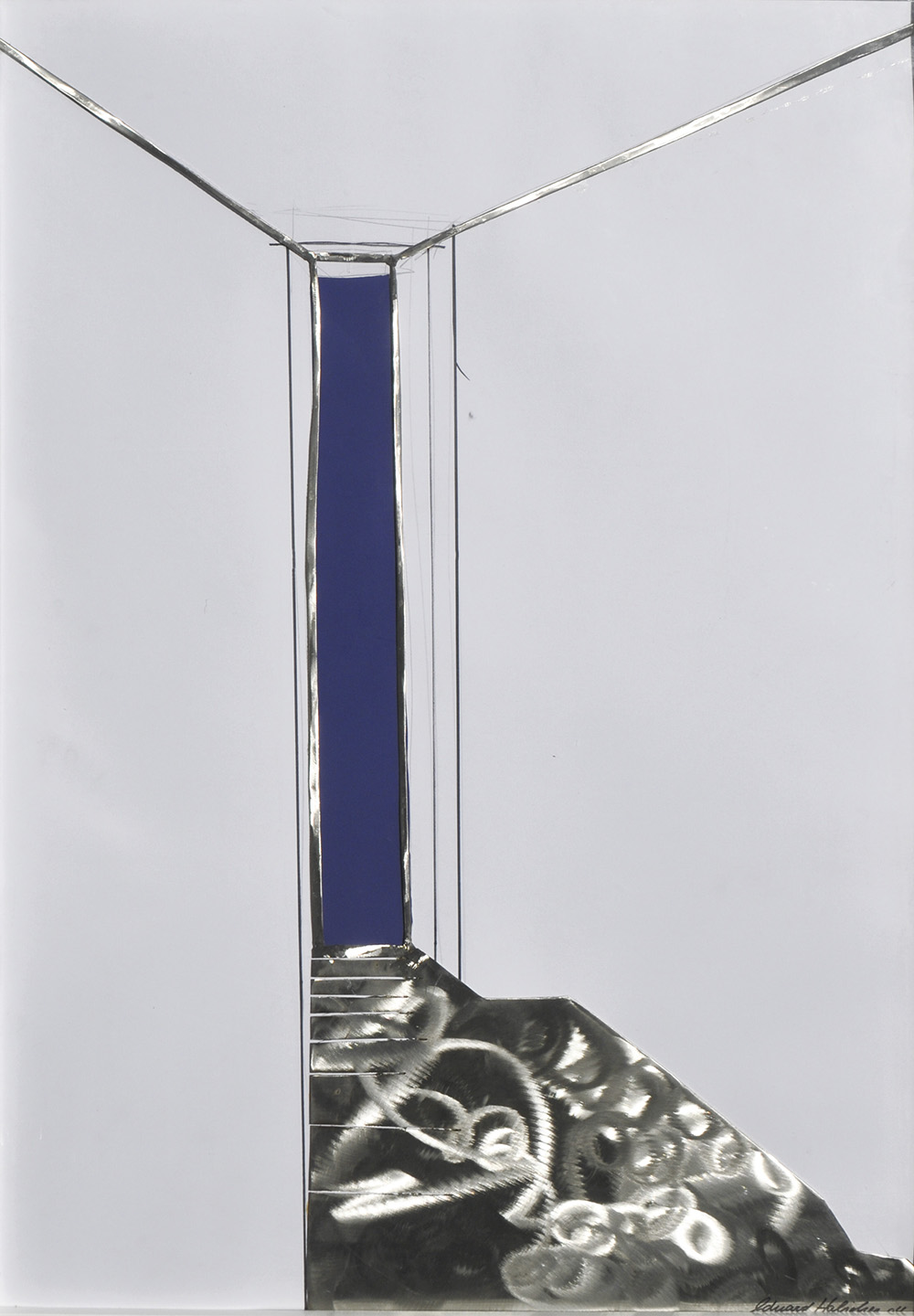 Eduard Habicher (* Mals/Malles 1956) Ohne Titel, 1994;Mischtechnik, Collage/Stahl auf Papier, 98 x 68 cm, gerahmt