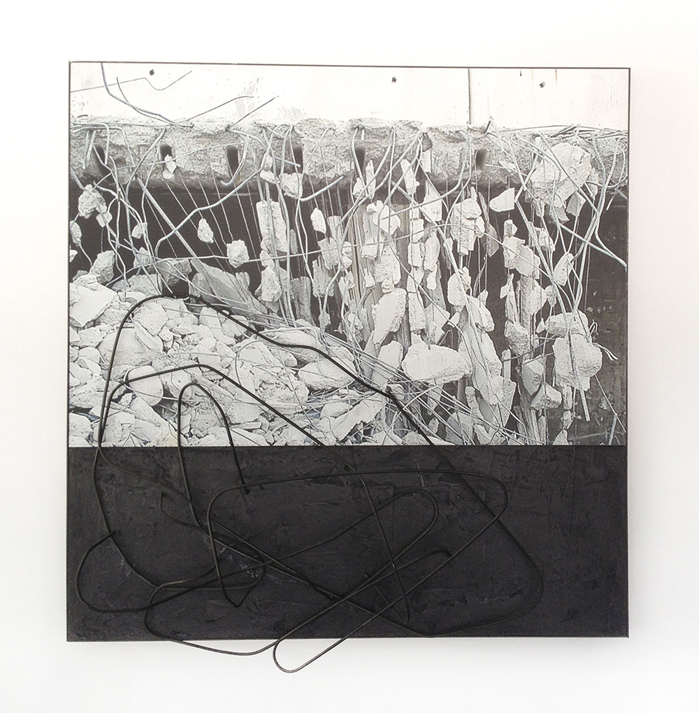 Ulrich Egger (* St. Valentin auf der Heide 1959) Rekonstruktion I, 2006;Fotografie, Stahl, Bleistift, 121 x 121 cm