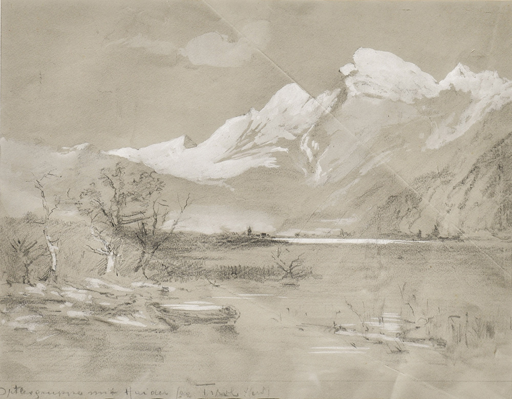 Maler des späten 19. Jh. Ortlergruppe mit Haidersee;Bleistift, Deckweiß, 24 x 30,5 cm, leichter Knick,
