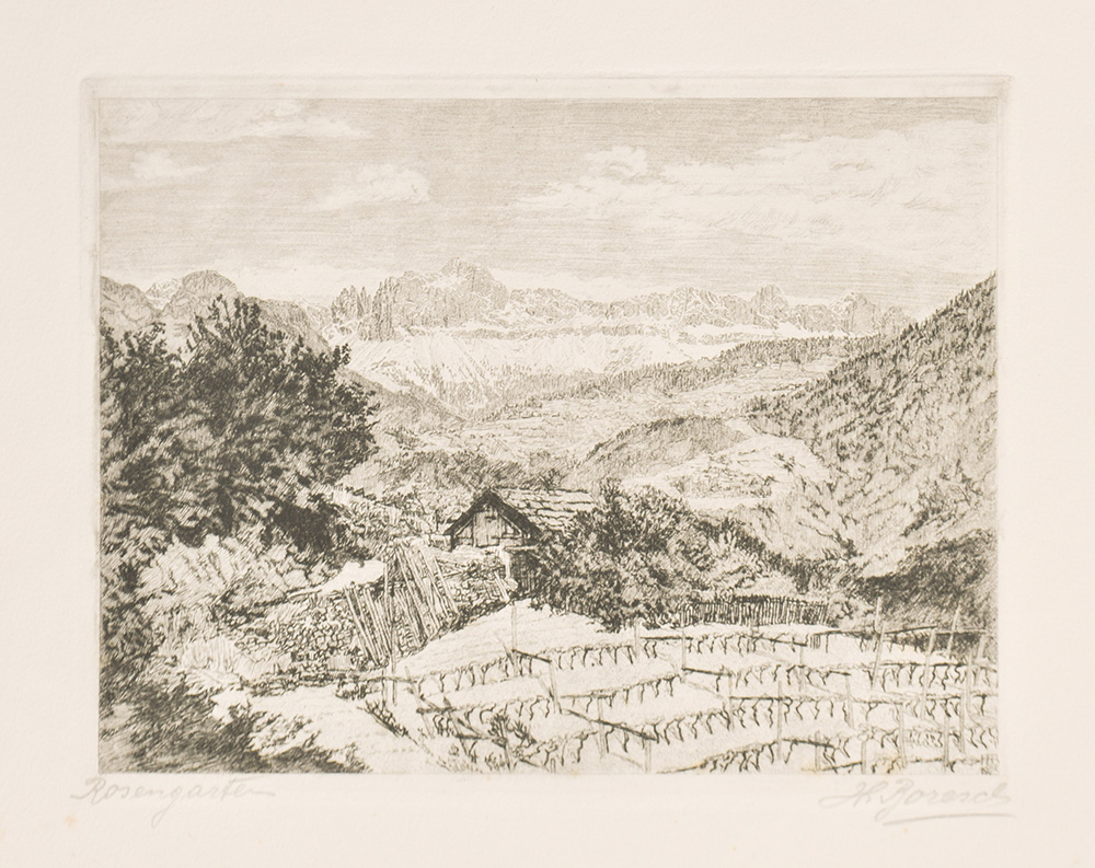 Hans Boresch (Berlin/Berlino 1890 – Innsbruck 1944) Rosengarten bei Bozen, 1925;Radierung, 18 x 23,5 cm