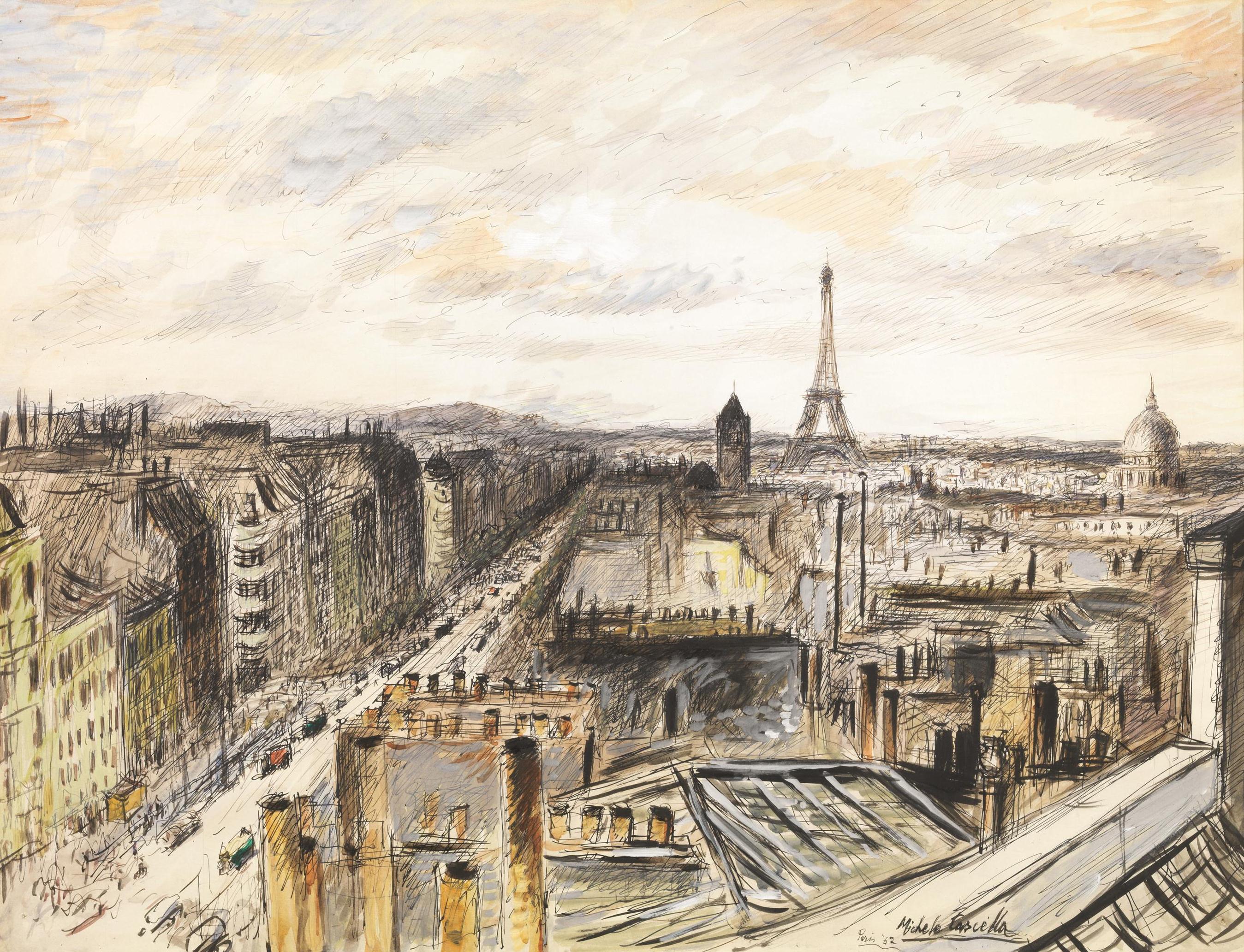 Michele Cascella (Ortona 1892 - Milano 1989) BOULEVARD MONTPARNASSE acquerello e china su carta, cm 50x65 firmato e datato eseguito nel 1962 Esposizioni Michele Cascella, Galleria Gussoni, Milano, 1962