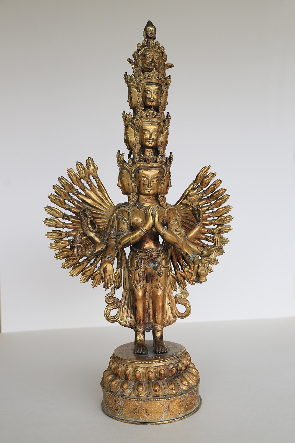 - Avalokiteshvara, Nepal/Tibet, 1. Hälfte 20. Jh.;Feuervergoldete Bronze, Höhe 58 cm