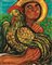 Giuseppe Migneco (Messina 1908 - 1997) DONNA CON GALLO olio su tela, cm 50x40 firmato sul retro: dichiarazione autografa di autenticità eseguito nel 1987 L'opera è accompagnata da autentica del Catalogo Generale Giuseppe Migneco con il numero 2637