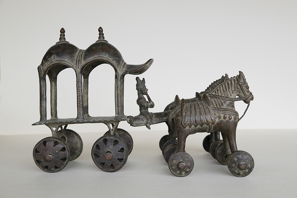 - Pferdewagen, Indien, 19. Jh.;Bronze, Höhe 27 cm, Länge 39 cm