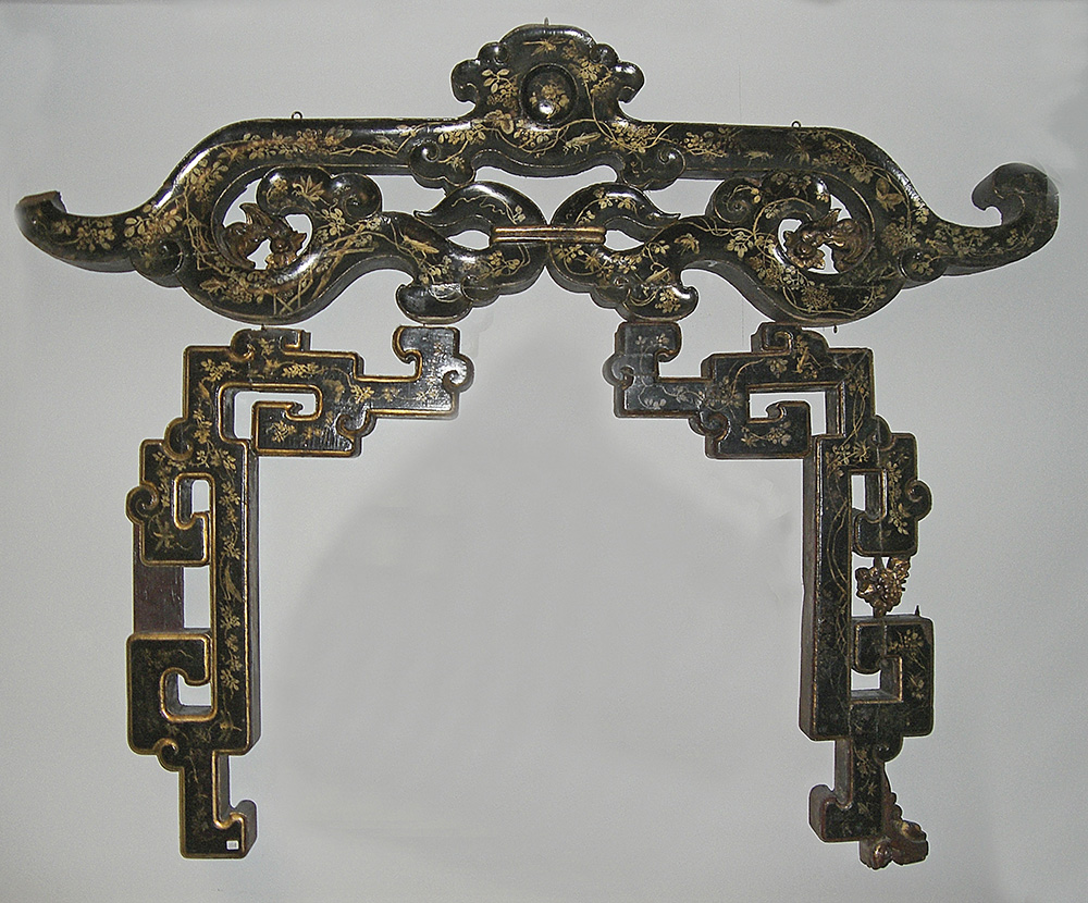 - Pagodentor, China, 18./19. Jh.;Holz, Lack- und Goldfarben, Höhe 142 cm, Breite 152