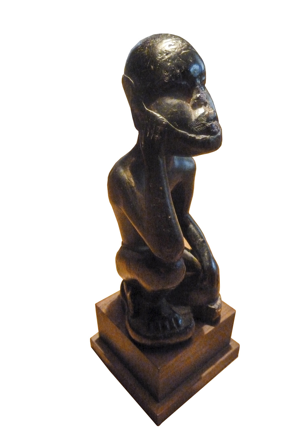 Statue eines Denkers, Kongo/Vili, wahrscheinlich Ende 19 Jh./Anfang 20. Jh.;Hartholz mit Bronzepatina, Höhe 14 cm