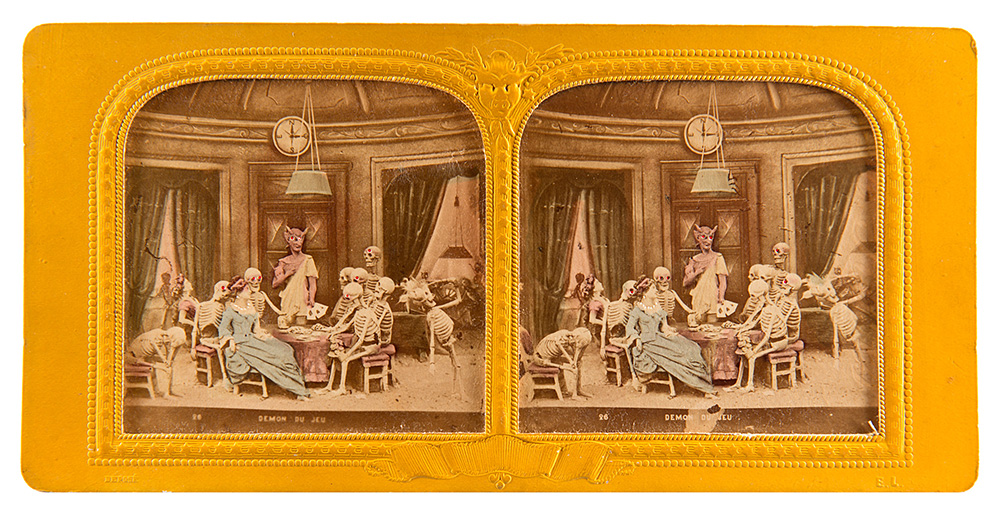 ANONIMO DI FINE XIX SECOLO Les diableries, Paris, anni 1860 14 stereoscopie vintage all'albumina colorate a mano e montate su cartoncino originale 8,6 x 17,7 cm ciascuna