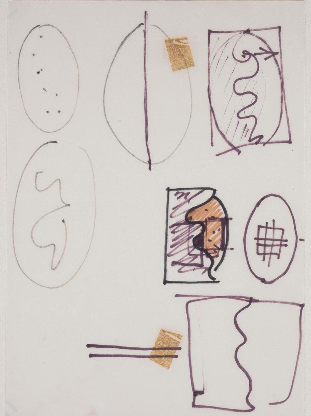 Lucio Fontana (Rosario de Santa Fè 1899 - Comabbio 1968) STUDI PER SCULTURE pennarelli su carta, cm 28x22 eseguito nel 1965 L'opera è accompagnata da certificato di autenticità a firma di Teresita Fontana. Opera registrata presso la Fondazione Lucio Fontana con il numero 1767/2