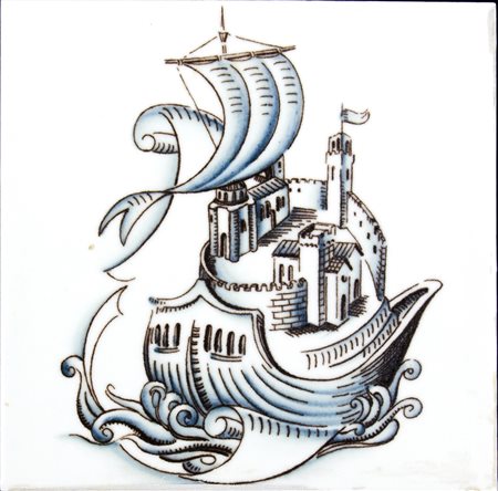 GIOVANNI GARIBOLDI Mattonella con soggetto marinaresco, anni ‘50 Terraglia dipinta a monocromia, 15 x 15 cm Marchio sotto la base: Richard Ginori Made in Italy
