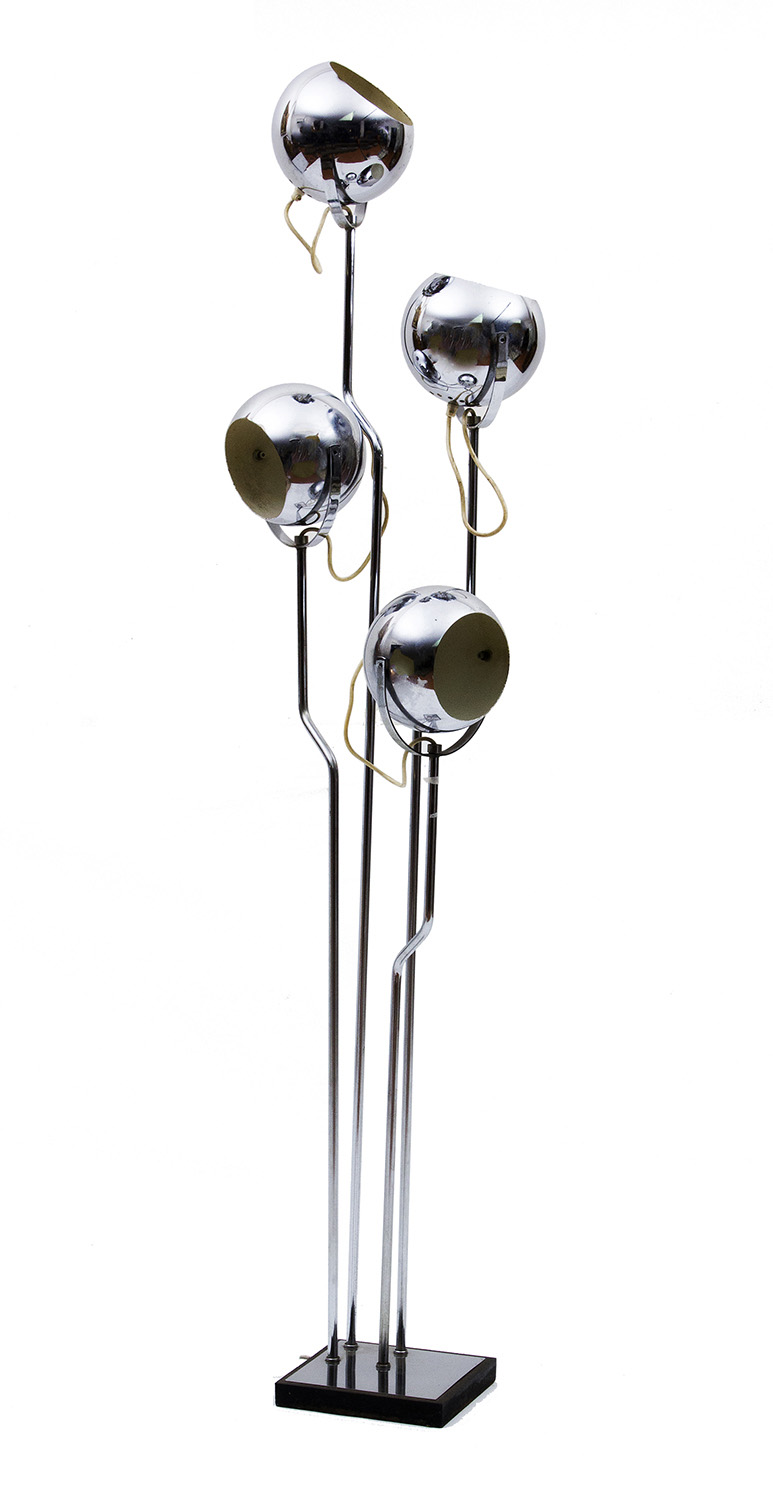 REGGIANI ILLUMINAZIONE (attribuito a) Lampada da terra, anni ‘70 Struttura in metallo cromato a quattro luci con diffusori a sfera orientabile, h.165 cm