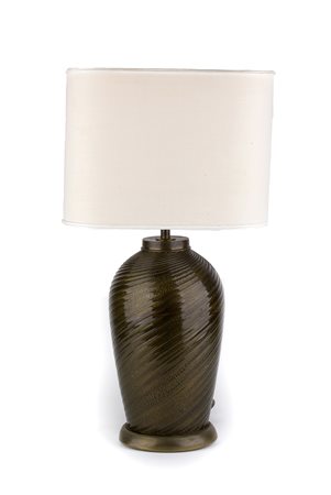TOMMASO BARBI Lampada, anni ’70 Base in vetro sommerso nero costolato con...