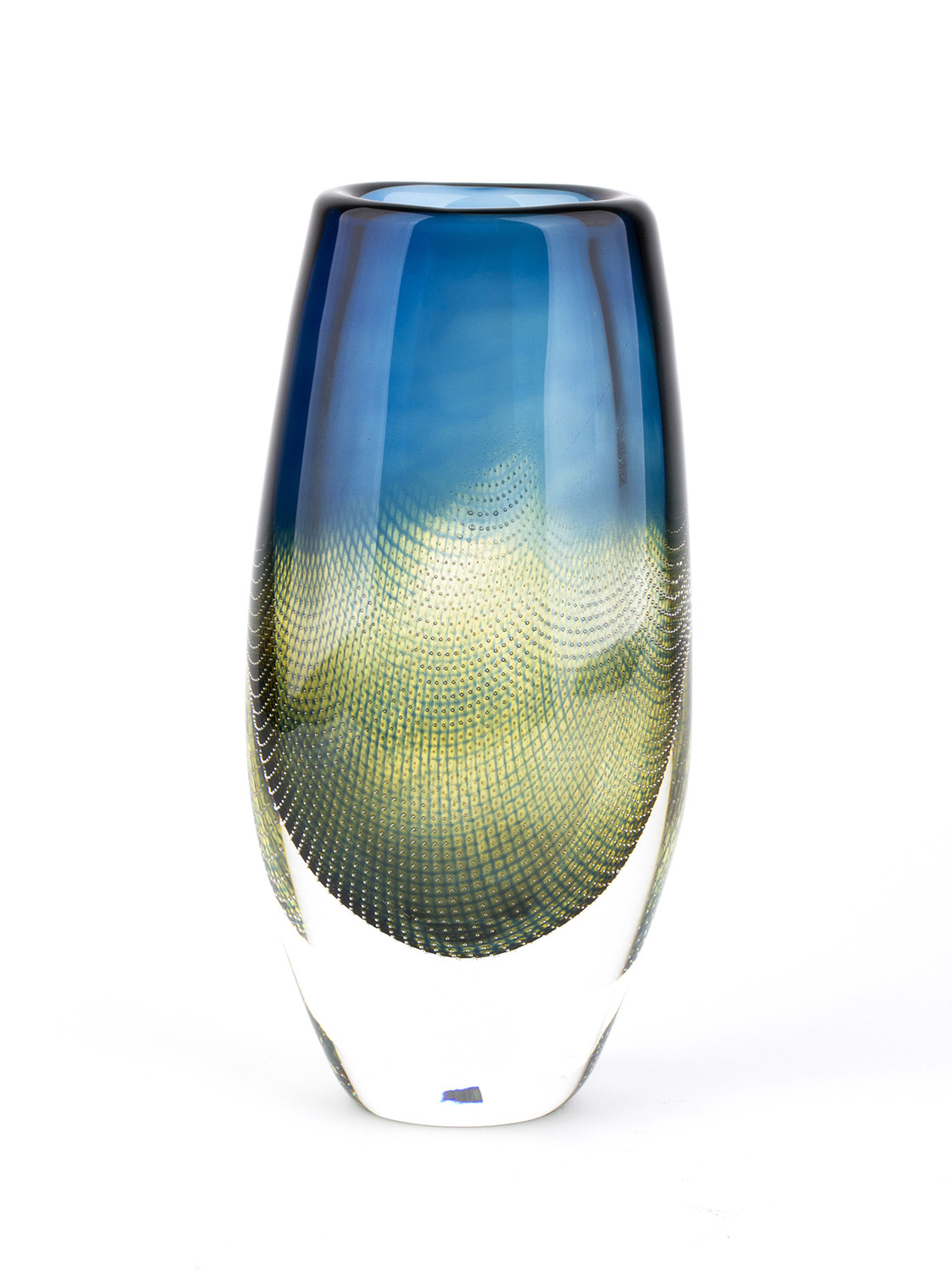 SVEN PALMQVIST - ORREFORS Vaso blu e giallo, Kraka n.411, anni ‘60 Vetro...