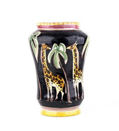 MUSA - ROMA Vaso con giraffe e palme, anni ‘40 Terracotta dipinta a...
