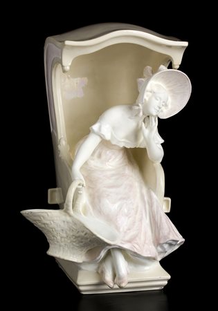 GOLDSCHEIDER - VIENNA Figura femminile liberty seduta su portantina, 1900...