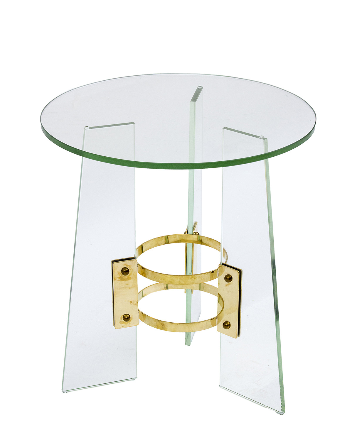 FONTANA ARTE (nello stile di) Tavolino rotondo, anni ‘30/‘40 Struttura in cristallo molato con montature in ottone, h. 57, d. 52 cm