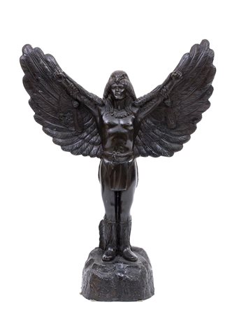 MANIFATTURA AMERICANA Capo tribù, primi del Novecento Scultura in bronzo brunito, 84 x 63 x 23 cm